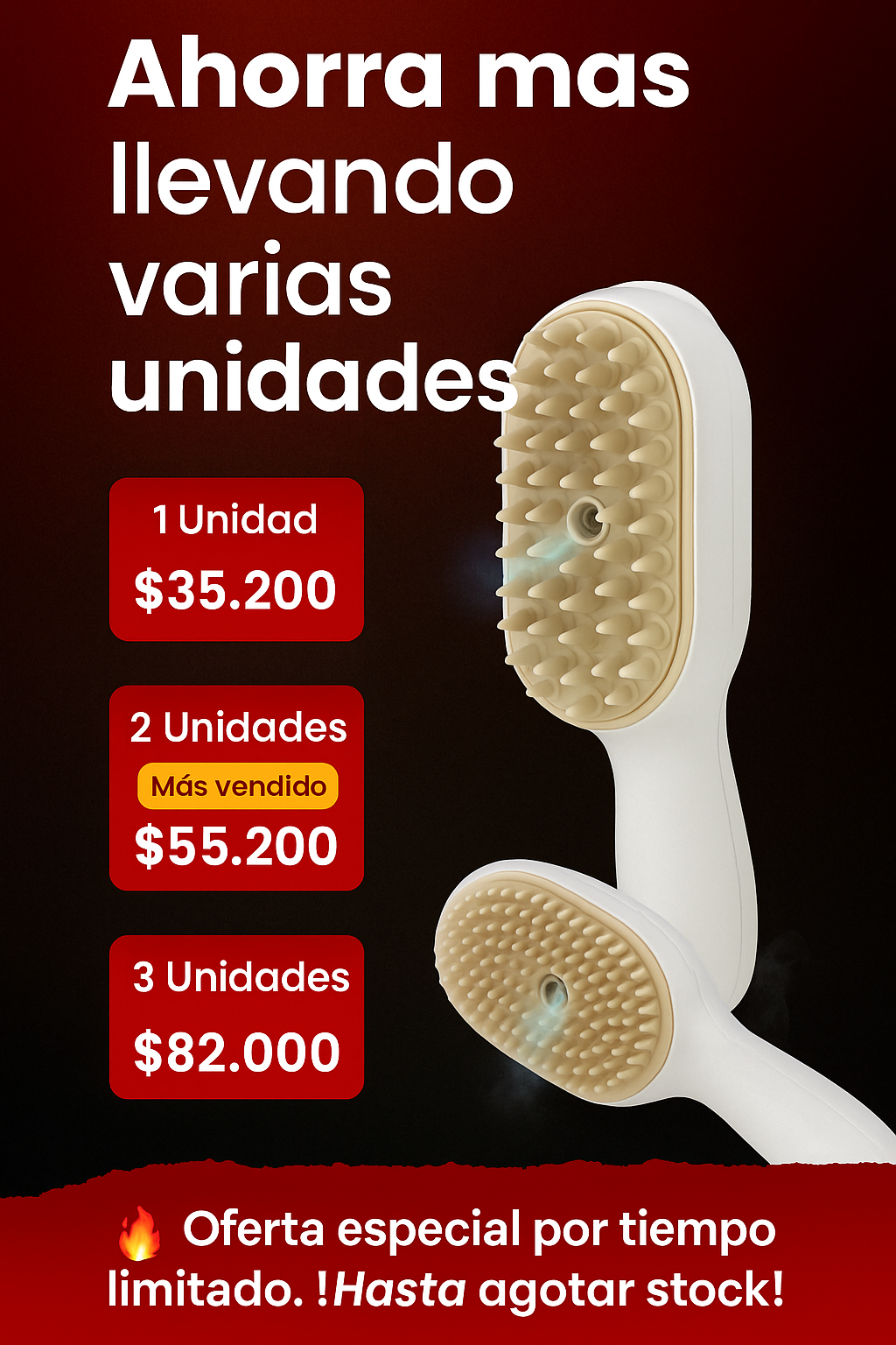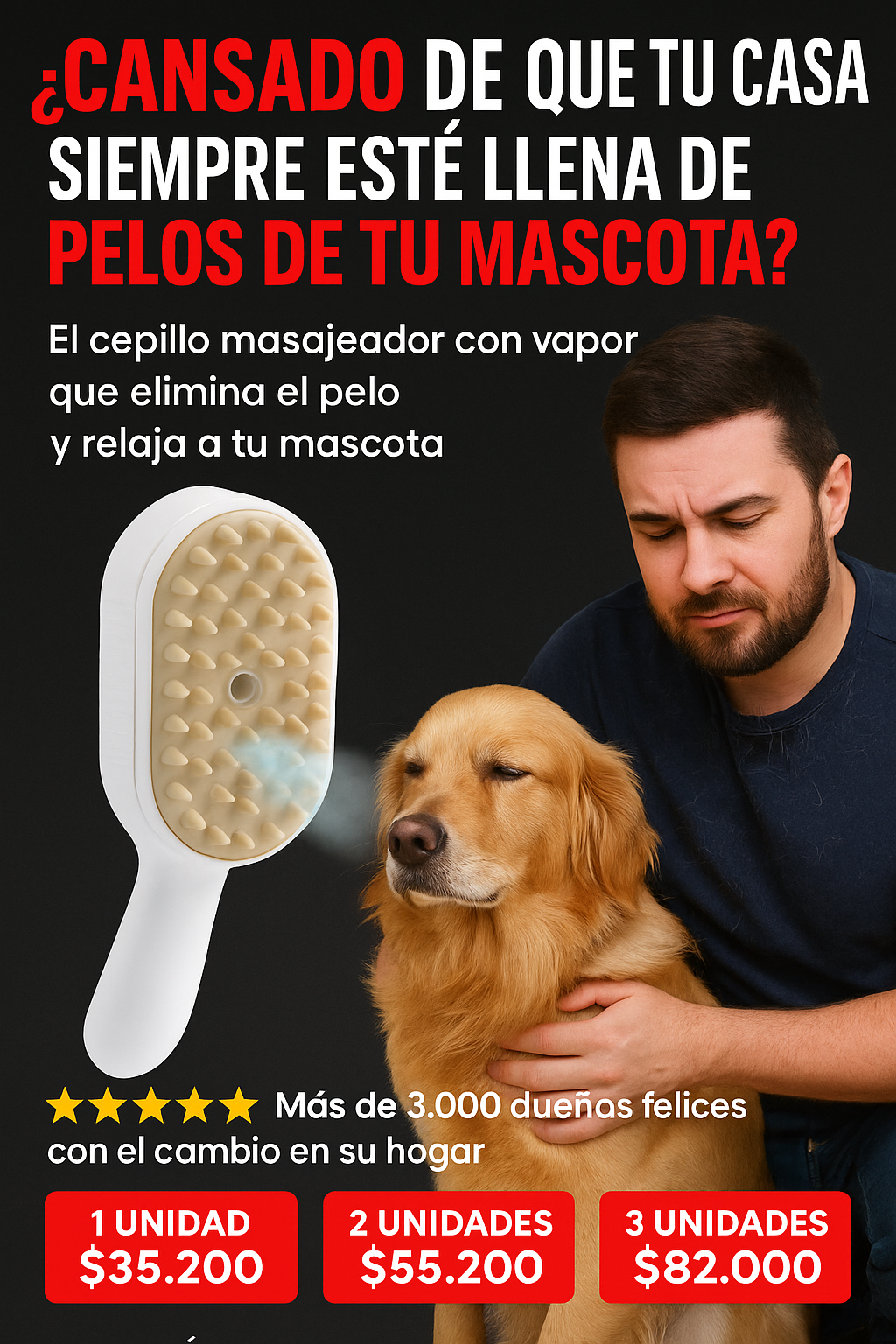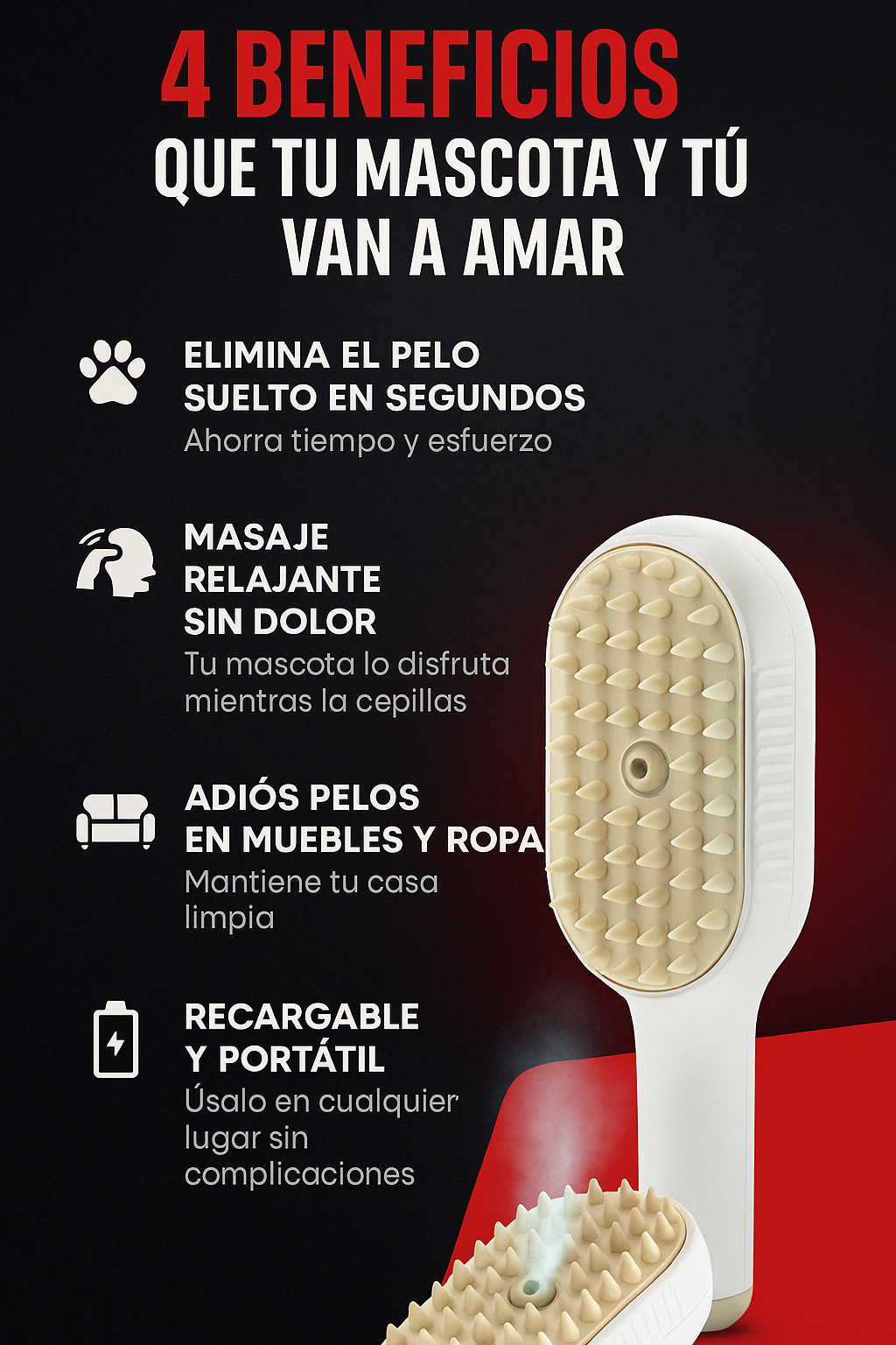 Cepillo a Vapor Masajeador Recargable | No mas pelaje suelto