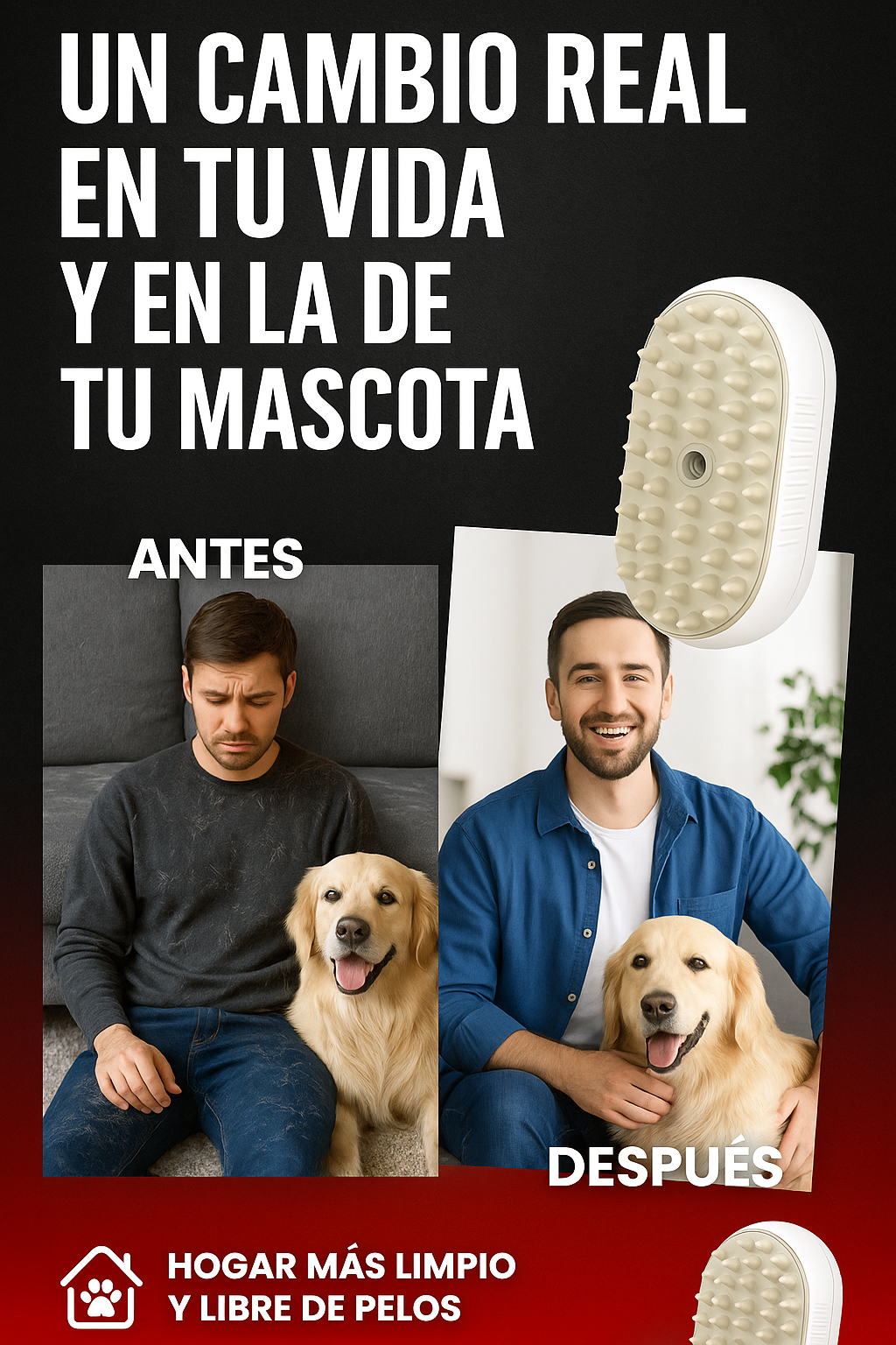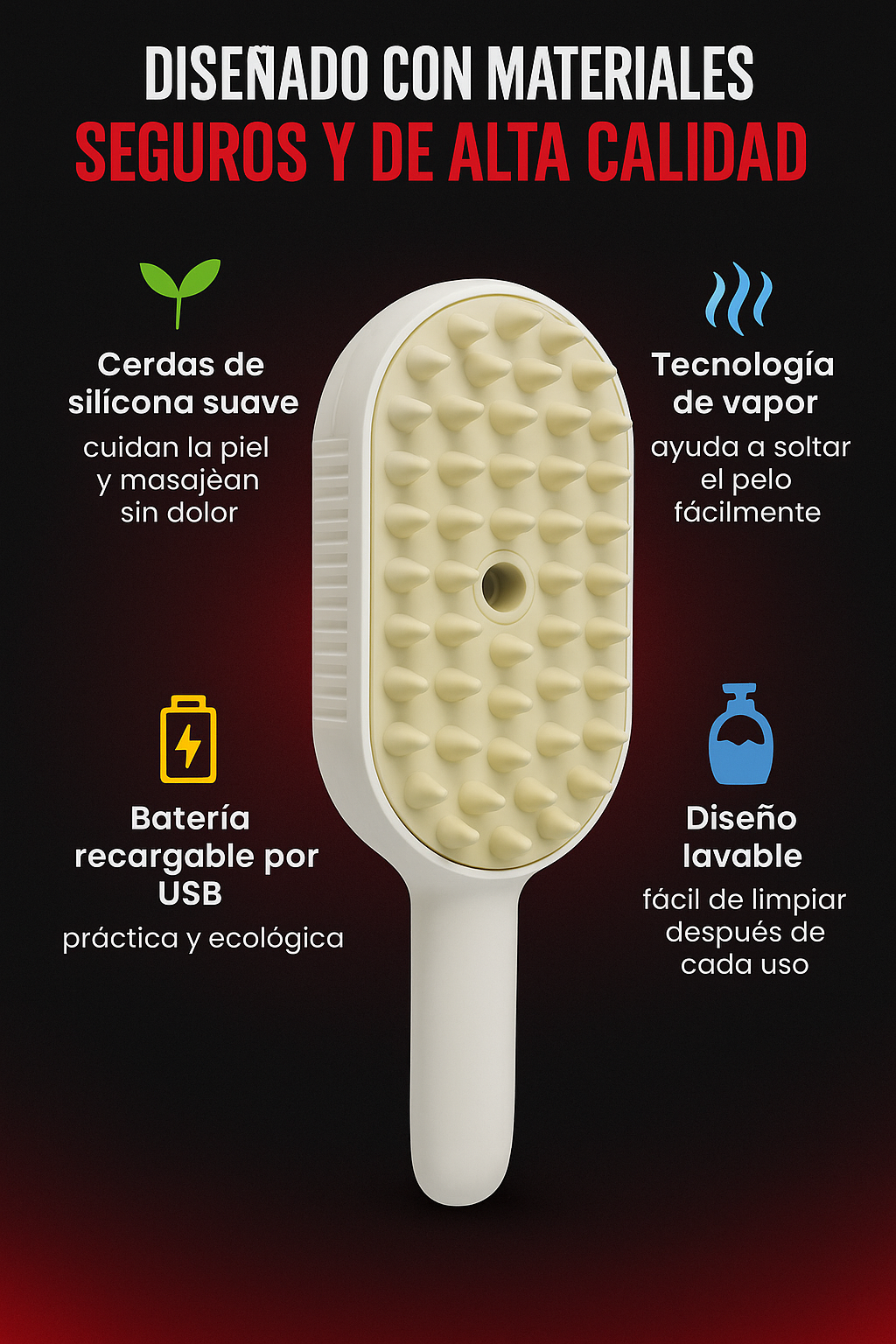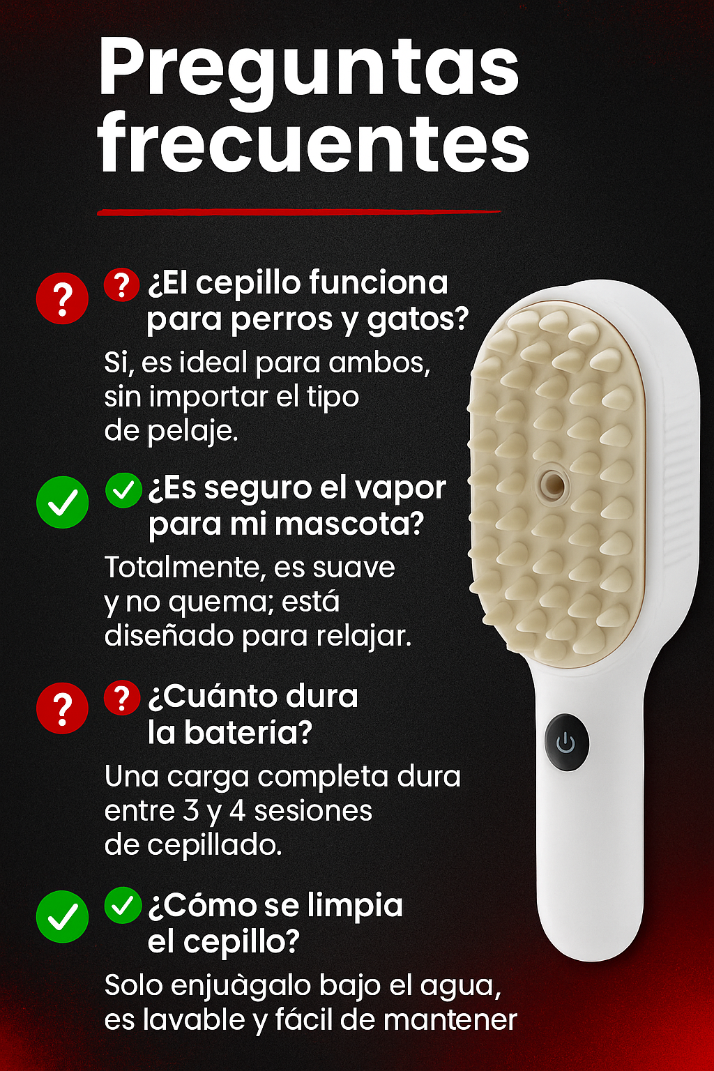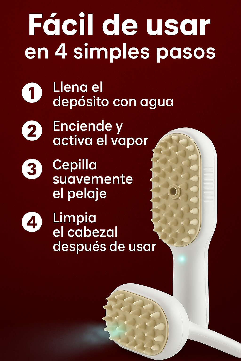 🐾 Cepillado sin dolor: El vapor ayuda a desenredar el pelaje sin tirones ni molestias.