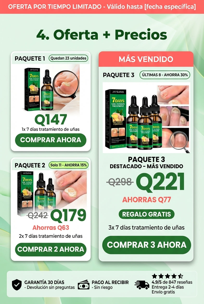 Lo compré por la oferta y fue sorprendente. Mis uñas dejaron de verse feas y ahora uso sandalias sin pena.