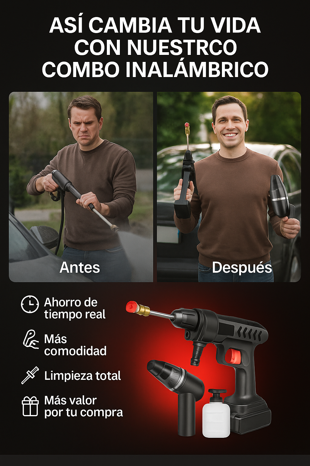 💦 Chorro de alta presión: eliminá la suciedad más difícil en segundos, ideal para autos, patios, terrazas y más.