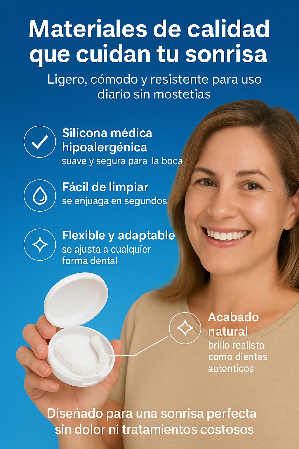 Trabajo con redes y lo uso para grabar. Nadie nota que no son mis dientes, queda todo parejo y blanco.