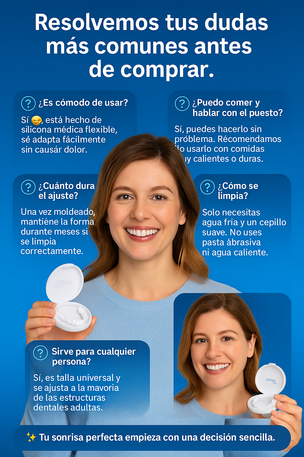Me faltaban dos piezas y se notaba al hablar. Esto me ayuda mientras hago el tratamiento fijo. Fácil de poner.