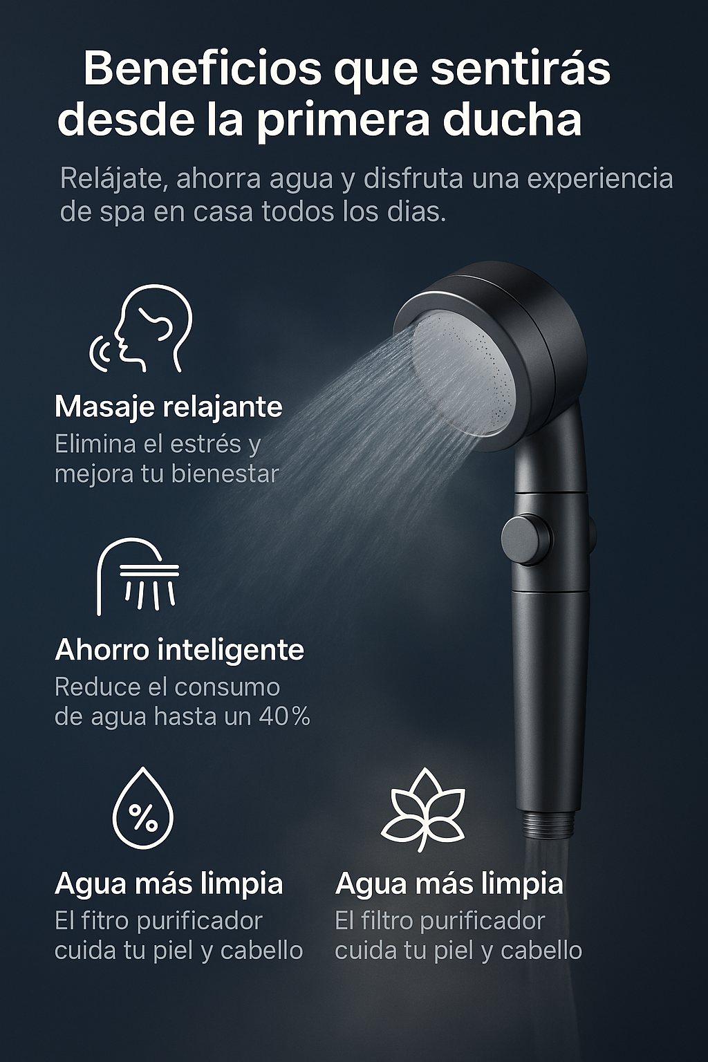 💧 Filtro purificador de agua — protege tu piel y cabello de impurezas.