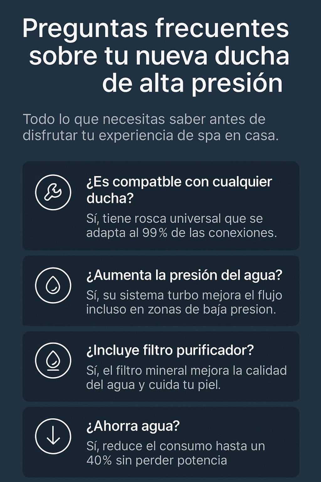 ¡Me encantó! La presión del agua cambió por completo. Ahora mi ducha parece un masaje diario, y además se ve súper elegante.