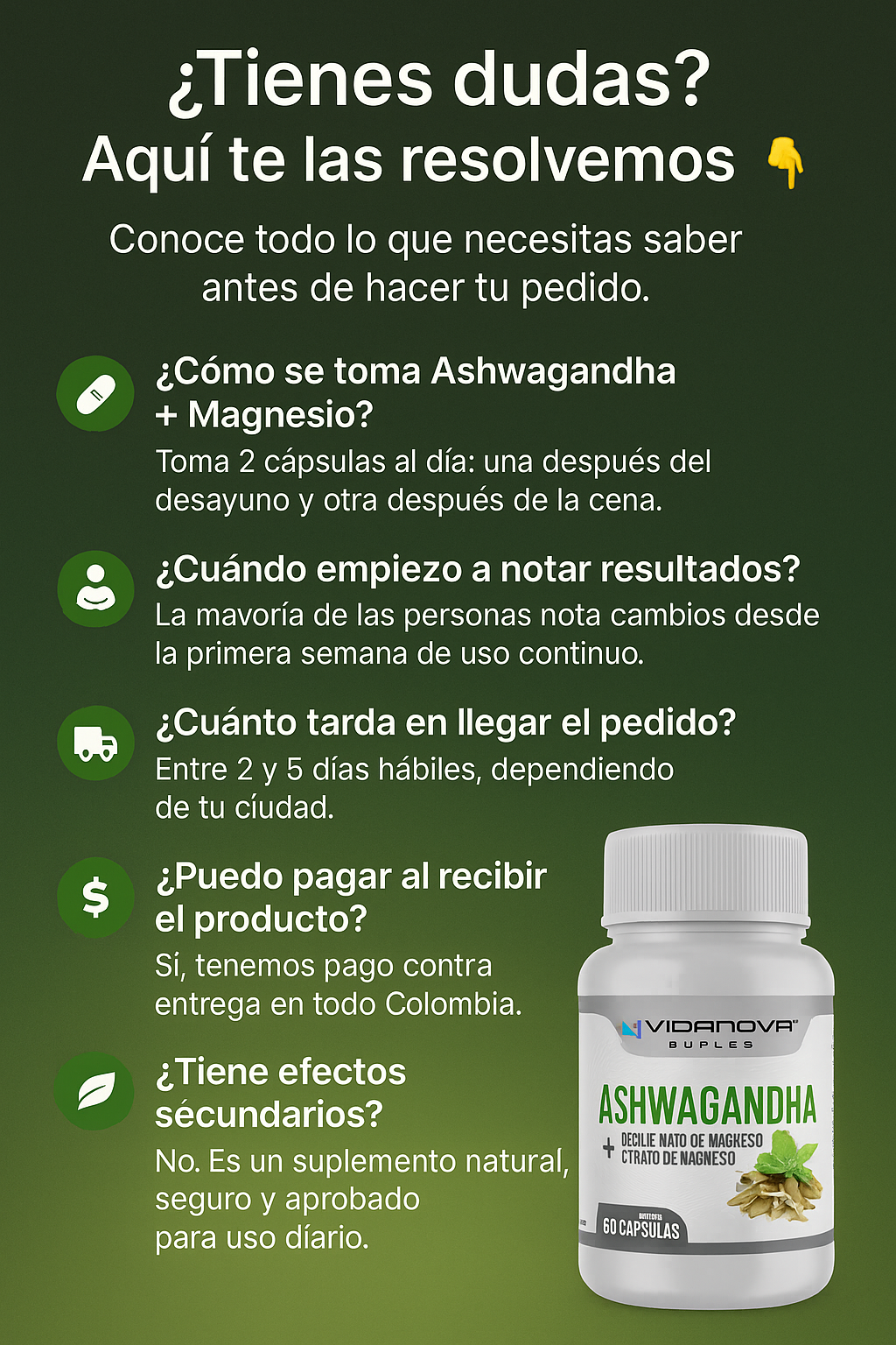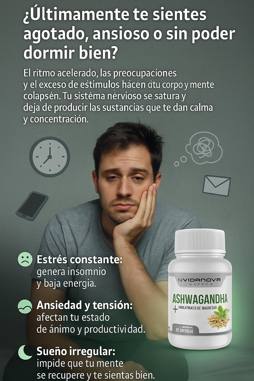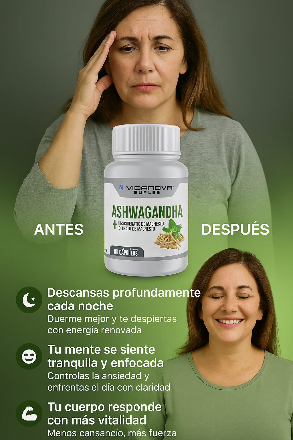 Tenía ansiedad por las noches. Con Ashwagandha + Magnesio ahora duermo tranquila y me levanto con mejor ánimo cada día.
